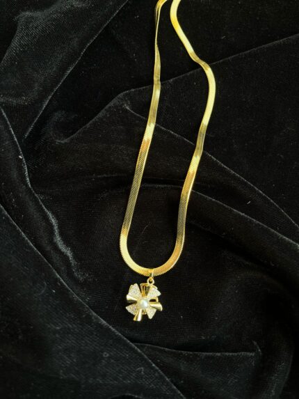 Rose clover heart pendant with snake chain