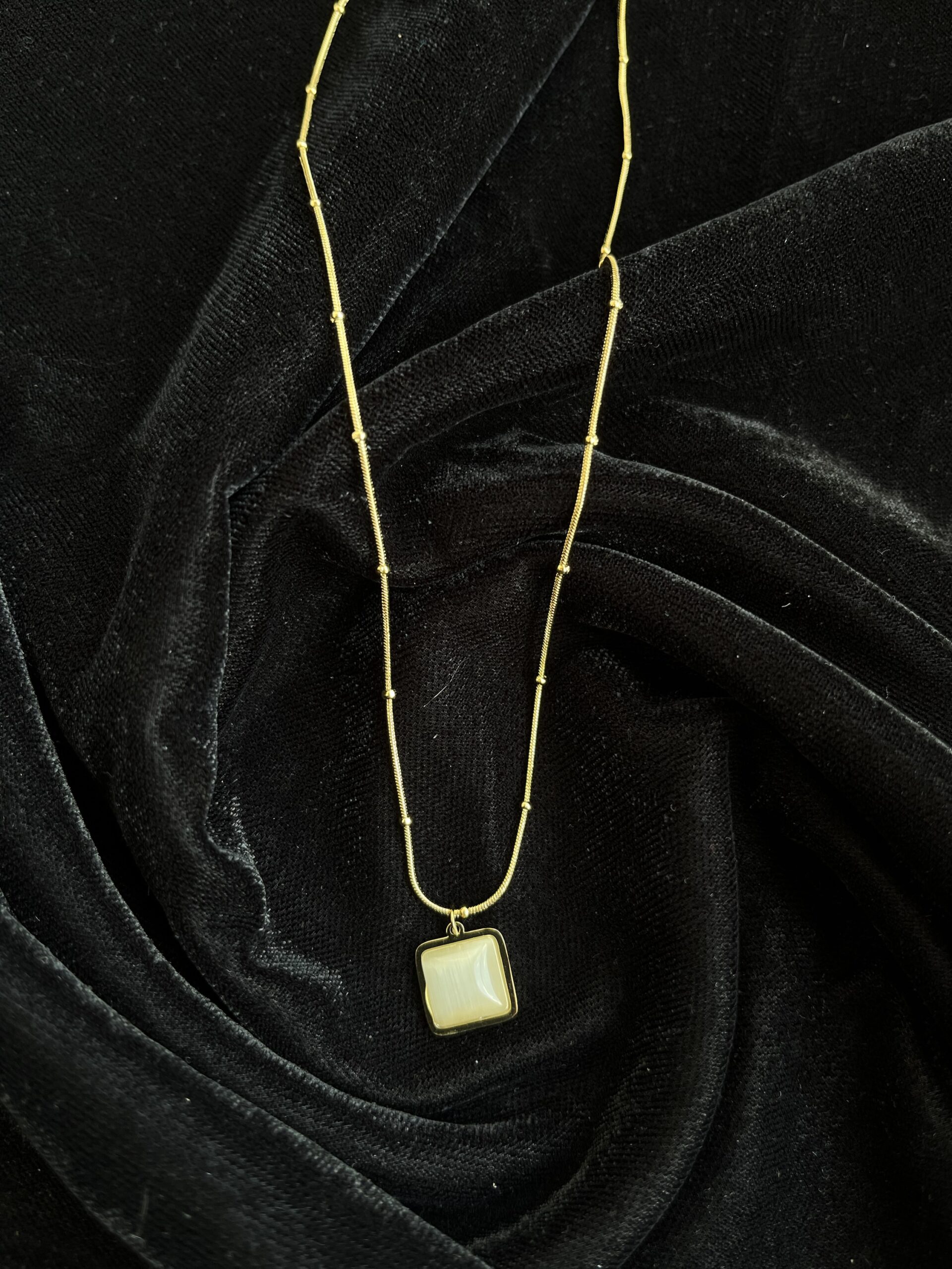 Blue cat eye pendant square gold