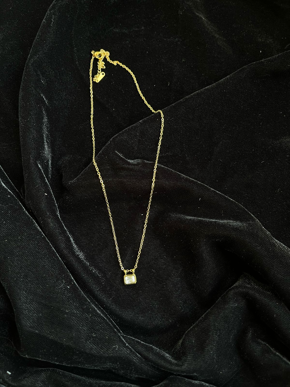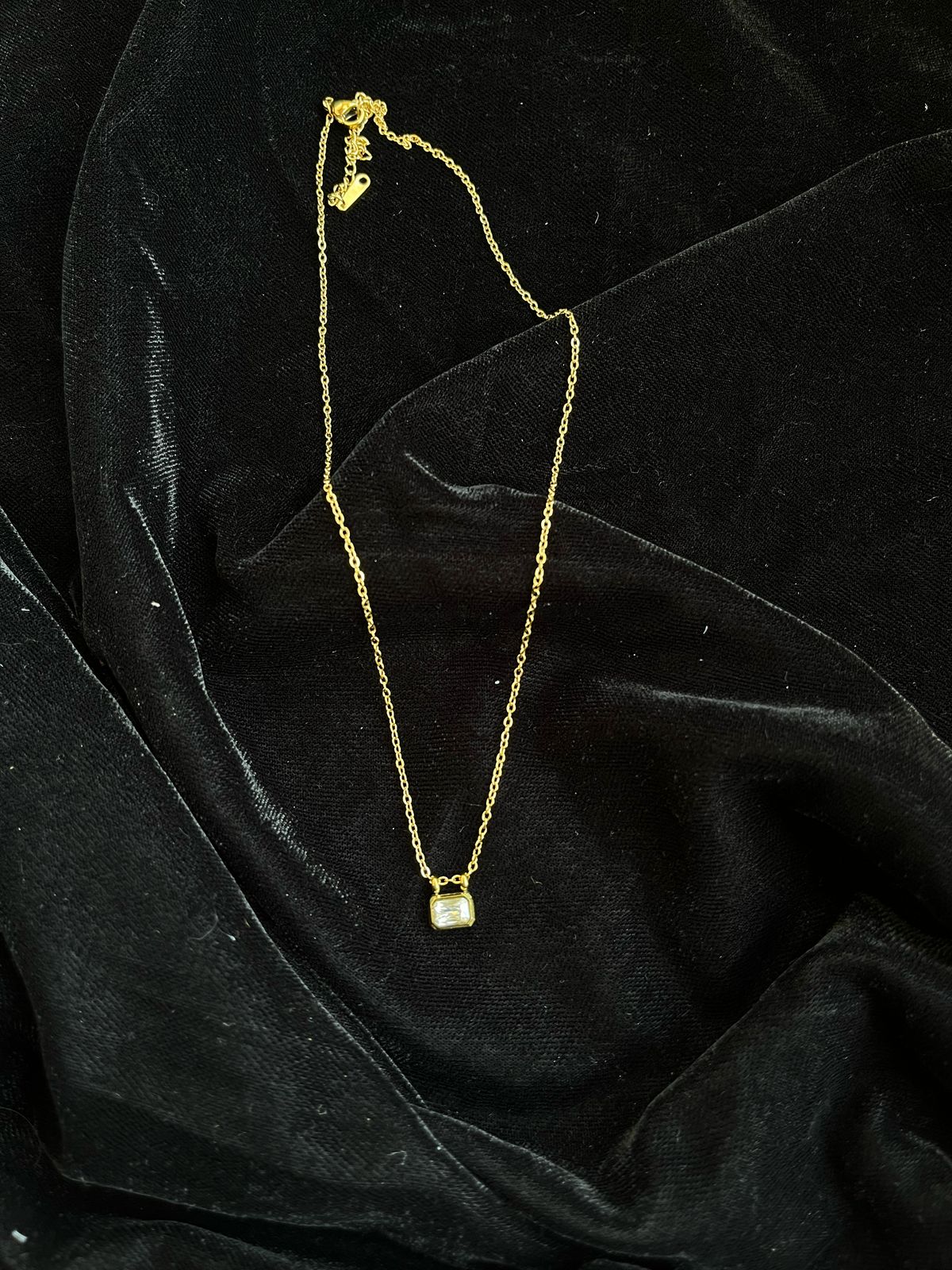 Single square shape stone anti tarnish water proof stainless jewellery necklace